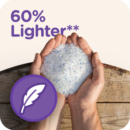 Easier to lift, pour, and store than traditional scoopable clay litters — all the performance without the heavy weight.