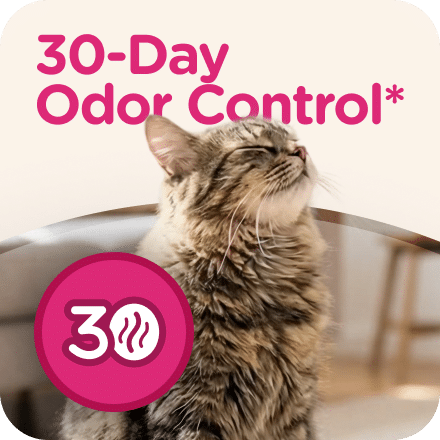 Instantly absorbs liquid and controls odors for 30 days for one cat.