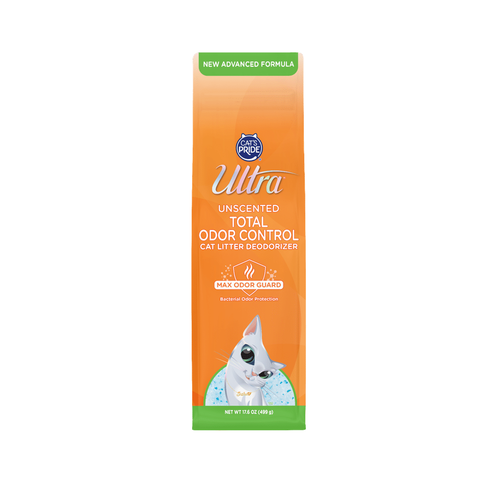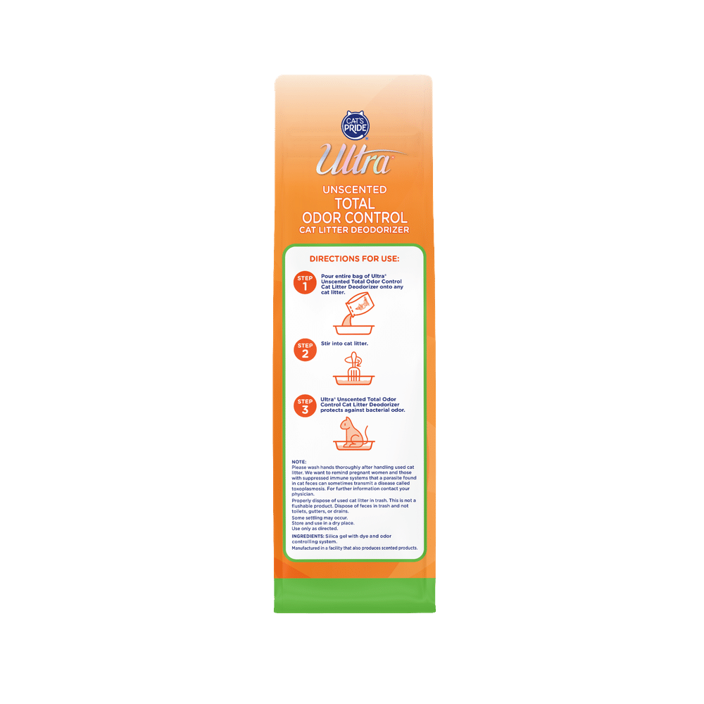 Pour entire bag of Ultra Unscented Total Odor Control Cat Litter Deodorizer onto any cat litter.
