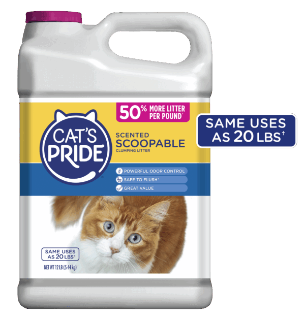 Cat’s Pride Scoopable Scented litter delivers powerful odor control in a flushable*, easy-to-scoop formula without harsh chemicals or overpowering fragrances.