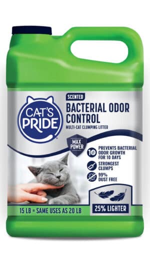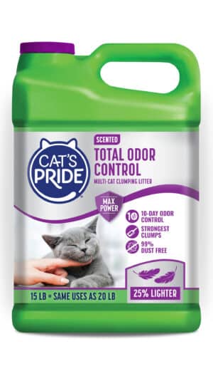 Cat’s Pride Scoopable Scented litter delivers powerful odor control in a flushable*, easy-to-scoop formula without harsh chemicals or overpowering fragrances.